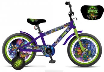 Детский велосипед «Черепашки» порадует поклонника популярного мультсериала «Черепашки ниндзя». Вместе с любимыми героями он легко научиться кататься на нем. держа равновесие и чувствуя себя уверено, благодаря маленьким страховочным колесикам. Характеристики:
