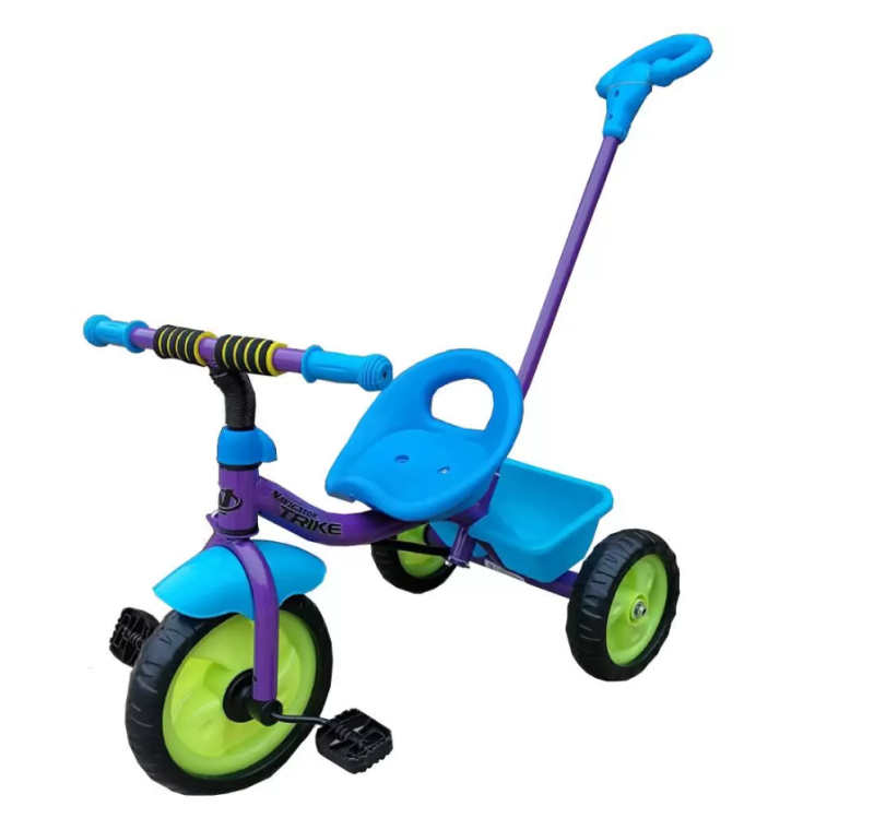 Велосипед 3-х кол, EVA покрышки, задняя корзина, родительская ручка с тягой для поворота переднего колеса, переднее колесо 19.5 см, заднее 15.5 см