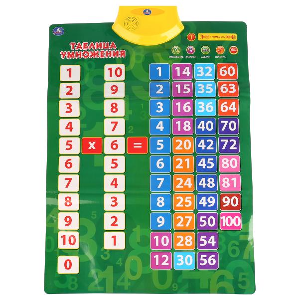 Говорящий плакат «Таблица умножения» ТМ «Умка» - это уникальный и многофункциональный помощник малышу в мире цифр, чисел и арифметических действий. Функционал игры приведёт в восторг и малыша, и взрослого: 110 примеров, 8 любимых песенок, 4 обучающих режима: учим таблицу умножения, слушаем песенку про цифры, 2 варианта экзамена. Развивает слуховые навыки и музыкальный слух, память, визуальное восприятие, внимание, усидчивость!