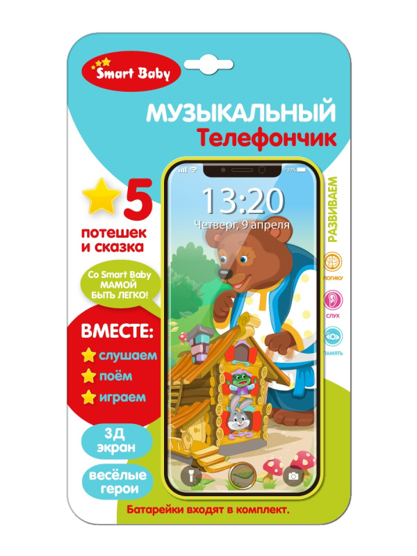Smart Baby Музыкальный телефончик Теремок станет прекрасным подарком для малыша, который мечтает о собственном телефоне.