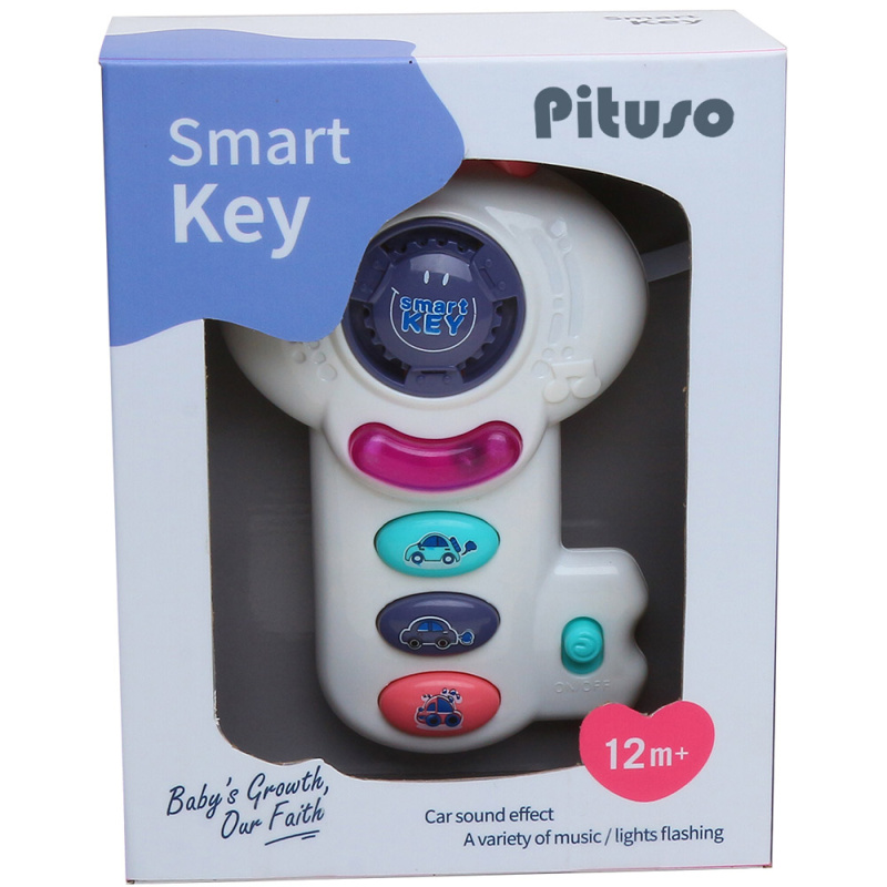 Развивающая игрушка представлена в виде ключа и включает в себя 4 разноцветные клавиши с различными звуками и светом.
