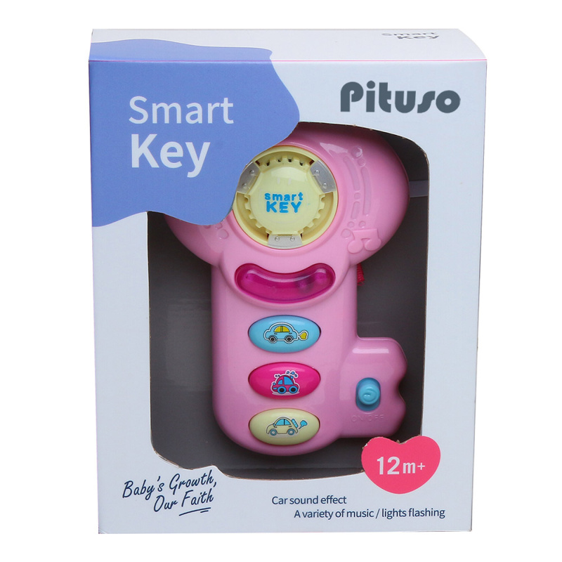 Развивающая игрушка представлена в виде ключа и включает в себя 4 разноцветные клавиши с различными звуками и светом.