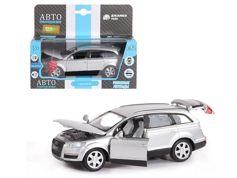 Металлическая лицензионная машинка Audi Q7 уменьшенная копия известного внедорожника в масштабе 1:32. Модель машинки детально проработана и выполнена с легко узнаваемым дизайном как у оригинала, которую часто можно встретить на улицах города. У машинки открывается капот, багажник и передние двери. Если нажать на корпус или открыть двери, загорятся фары и включится звук мотора. Игрушка оснащена инерционным механизмом. Чтобы она поехала вперед, ее нужно немного откатить назад. С такой машинкой ребенок может устраивать гонки с друзьями. Игрушка развивает мелкую моторику, реакцию и координацию движения. Она надолго займет внимание ребенка или пополнит коллекцию любителя иномарок.