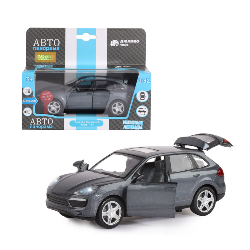 Металлическая лицензионная машинка Porsche Cayenne S - уменьшенная копия известного спортивного кроссовера в масштабе 1:32.