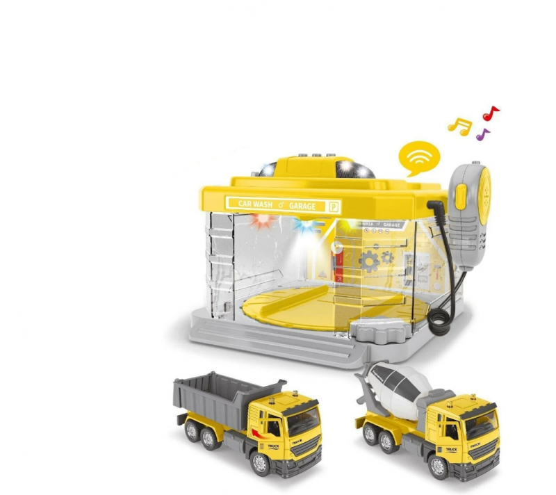 Автомойка с паром оснащена вращающимся поддоном, трубкой-микрофоном с усилителем звука, звуковым блоком с кнопками и подсветкой. Подача пара осуществляется автоматически. Пар абсолютно безопасен для ребенка, т.к. для его генерации используется чистая вода. Вода заливается в резервуар под клапаном на крыше. Поворотная платформа вращается вручную с помощью механизма вращения.