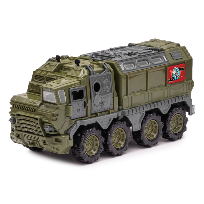 Мощный боевой модуль выглядит очень реалистично, что понравится и мальчику, и его папе. Юный знаток армейской темы оценит эту модель военной техники. Такой военный спецтранспорт легко справится с любым бездорожьем, ведь он имеет четыре пары больших колес. Модель хорошо детализирована и раскрашена в военные цвета.