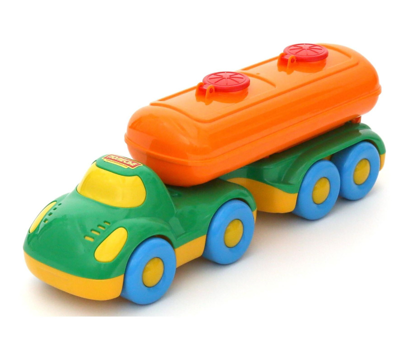 Функциональный, красочный и привлекательный автомобиль серии «Дружок» оснащен полуприцепом-цистерной. Отличный подарок для маленьких автолюбителей, достигших возраста 2-х лет. Цистерна располагается на полуприцепе, она поднимается и опускается — это доставит ребенку дополнительную радость.