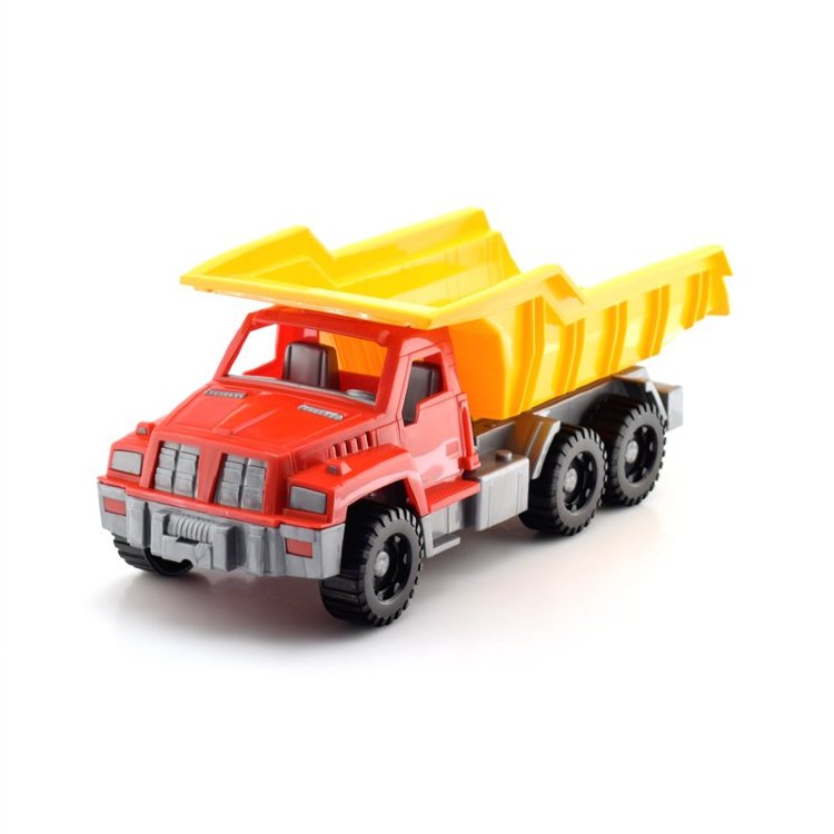 Пластмассовые игрушки «Строительной серии» заслужили свою популярность своим сходством с настоящим транспортом как по внешнему виду, так и по функциональности. Яркая расцветка машинок и тракторов транспортной серии способствует полету фантазии ребенка, и игры становятся все разнообразнее и интереснее. Автомобиль-самосвал с функцией опрокидывания кузова для выгрузки.