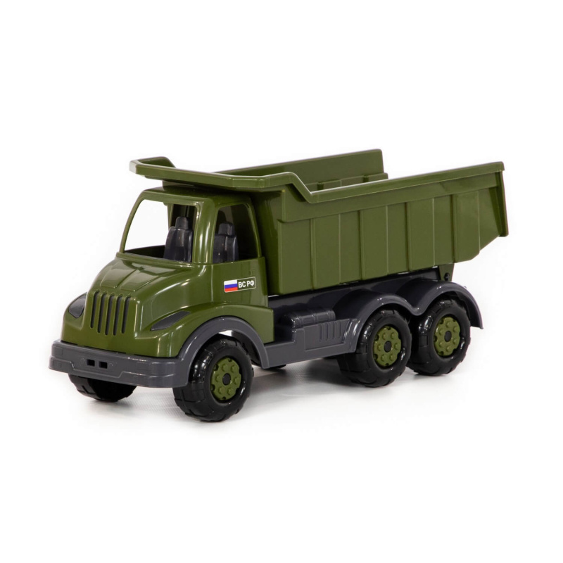 Автомобиль-самосвал из серии игрушек военной техники. С этим автомобилем можно играть как в помещении, так и на улице. Игрушечный автомобиль-самосвал отлично подойдет для перевозки грузов и строительных материалов вашего малыша. Кузов у автомобиля откидывается, что позволяет с легкостью выгружать груз. Также на переднем бампере предусмотрено отверстие для верёвки. Ваш малыш сможет катать автомобиль за собой.