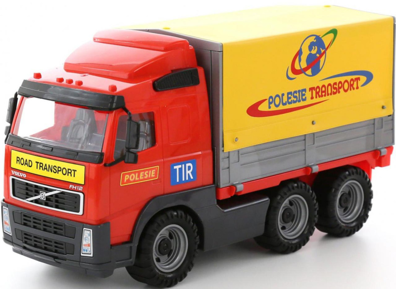 Игрушечный грузовик Volvo из высокопрочного пластика, со съемным тентом, каркасным кузовом, откидным задним бортом и детализированной кабиной. Задняя часть кузова открытая, есть крепление для прицепа. Игрушка рекомендована детям от 3-х лет.