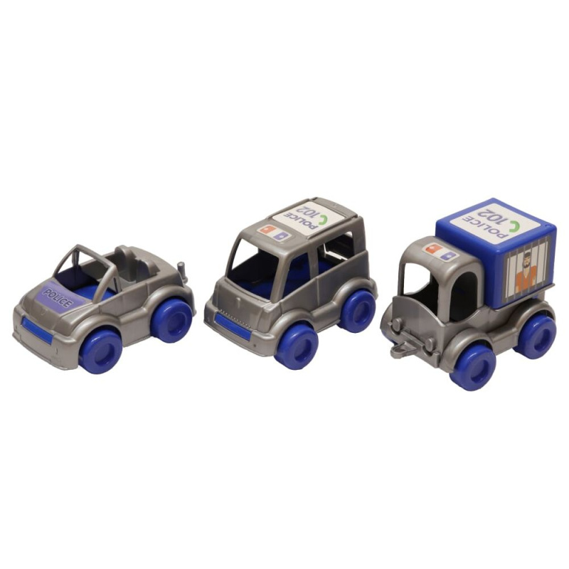 Серия тематических игрушечных авто Kid Cars - интересные маленькие игрушечные модели от 1 года. В набор "Kid cars" полицейский входит: бус, джип, и контейнер. Каждая игрушка украшена тематическими наклейками. Машинки можно соединять между собой. Маленькие игрушки очень похожи на реальные модели наземного транспорта, некоторые модели имеют подвижные элементы, что делает игру интересной и реалистичной. Благодаря небольшим размерам игрушка станет любимым спутником малыша, и настоящей жемчужиной для маленьких коллекционеров.