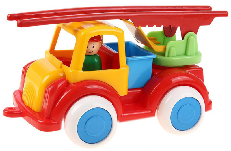 Игрушечная пожарная машинка «Детский сад» комплектуется съемной фигуркой водителя. Колеса этой игрушки созданы из ПВХ, утяжелены, они выполняют роль инерционного двигателя. Лестница способна подниматься и поворачиваться. Материал изготовления прошел все необходимые проверки на качество и безопасность.