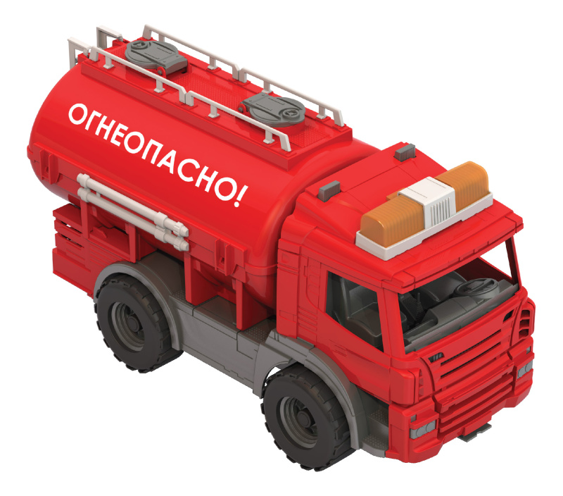 Цистерна снабжена двумя верхними открывающимися люками, а также внутренним герметичным баком, в который ребенок сможет наливать воду или насыпать песок. С задней стороны цистерны есть лестница. Игрушка отлично детализирована, выполнена в ярких цветах, обладает особой прочностью, в том числе благодаря колесам на металлических осях.