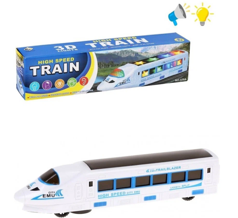 Наша игрушка Поезд 33х8х5 см Игрушечный электронный поезд. При включении игрушка осуществляет произвольные движения, воспроизводит звуки и красиво светится огнями. Характеристики: Игрушка работает от 3-х батареек типа АА на 1,5 V (не входят в комплект). Размер поезда (ДхШхВ) составляет 33х5х8 см. Материал изготовления: пластмасса. Рекомендованный возраст: 3 года +