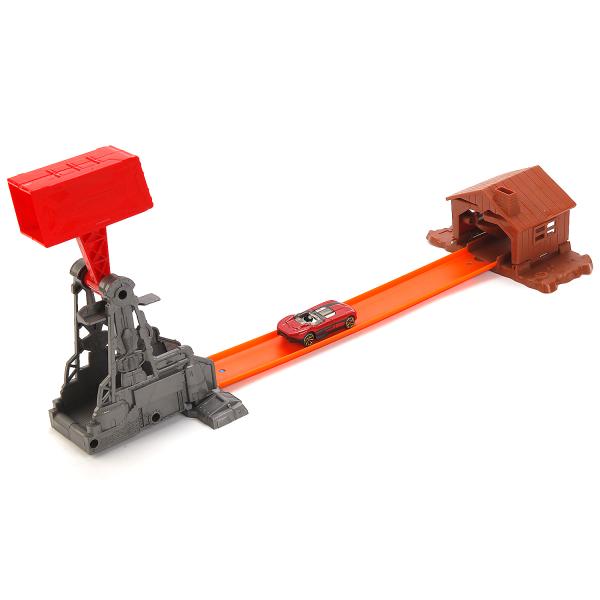 Гоночный автотрек будет лучшим приобретением для ребёнка. Он состоит из элементов для сборки дороги, металлической машинки, большого молота и домика в конце пути, сквозь который нужно проехать. Все детали проработаны и сделаны из качественного пластика. Рекомендуется детям от 4-х лет.