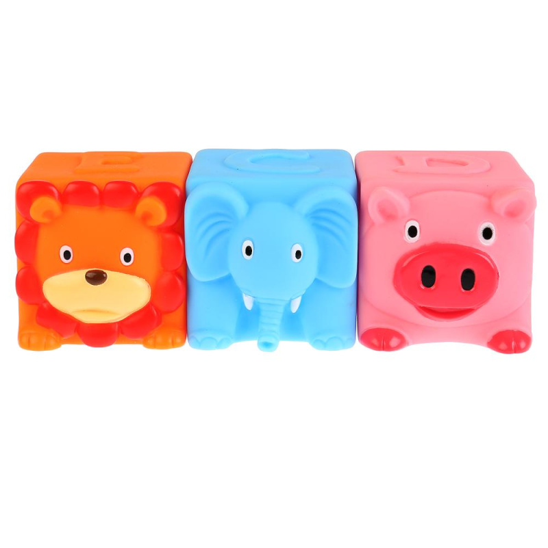С яркими кубинками-пищалками кроха с удовольствием будет играть во время купания в ванной. Кубики стилизованы под симпатичных животных – львенка с очаровательной гривой, слоненка с длинным хоботом и белыми бивнями и милую свинку с розовым пятачком. Новые друзья станут героями увлекательных сюжетных игр маленького фантазера.
