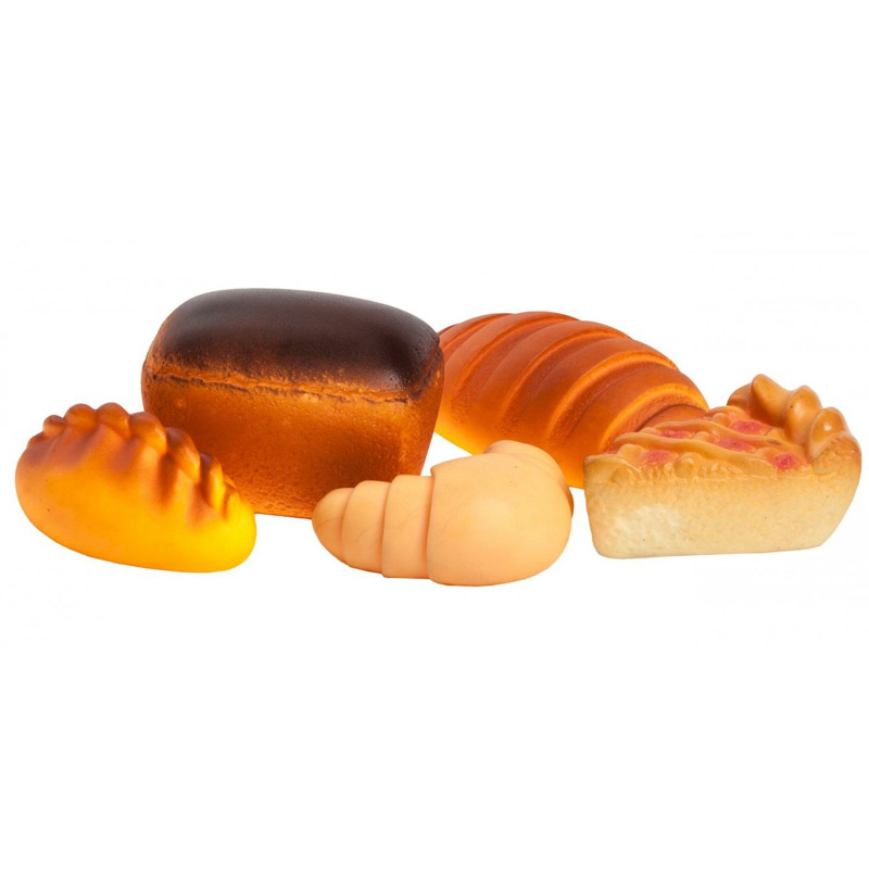 В наборе ребенок найдет аппетитные игрушки хлебобулочных изделий на любой вкус: батончик белого хлеба, румяный черный хлебушек, круассан, кусочек открытого пирога с начинкой и пирожок.