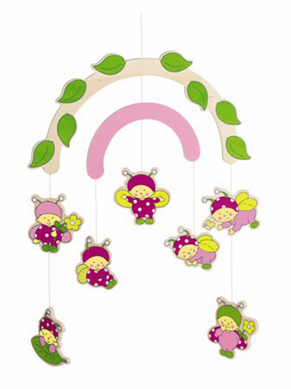 Мобиле Божьи коровки порадуют малыша яркими красками. Изготовлено из массива дерева, собрано на тонких нитках.Помимо кроватки, мобиле можно подвесить на кроватку, манеж, коляску.