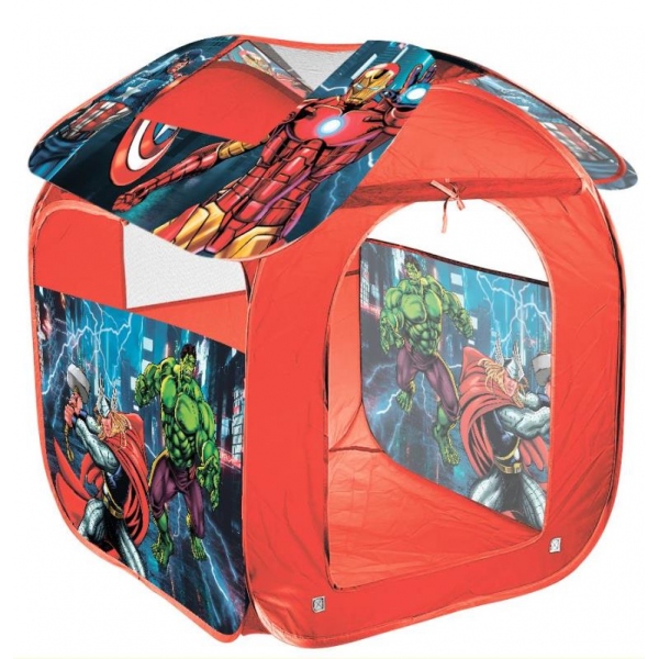 Малыш с удовольствием будет играть в этой яркой палатке, сделанной в виде домика и украшенной изображением отважных супергероев. Палатка быстро собирается и разбирается, она очень компактна в собранном виде, поэтому её можно взять с собой на дачу или пикник.