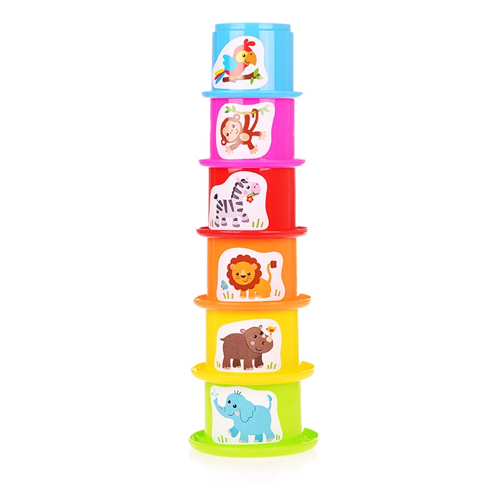 Это яркая и увлекательная пирамидка, в виде разноцветных стаканчиков, на которых изображены обитатели Зоопарка. В процессе игры ребенок учится различать цвет, развивать мелкую моторику рук и память. Кроме развивающих свойств пирамидка обладает отличными игровыми качествами. Ее элементы можно соединить в башенку. Так же стаканчики можно использовать в качестве формочек для песка и делать отпечатки с разными узорами, которые располагаются на внешней стороне донышка. С цветными стаканчиками можно играть не только в песочнице, но и в бассейне с водой, переливая ее в виде водопадика!