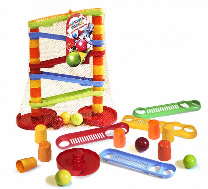 Высота горки - 43 см. Комплектация: игровые шарики (45 мм.), 3 шт. - основание горки - 2 шт., колпачки - 20 шт., горки - 5 шт.