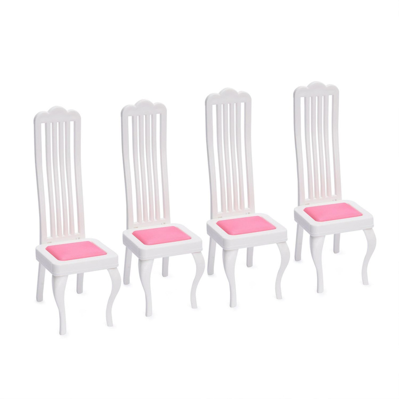 Особенность: 4 белоснежных кукольных стульчика предназначены для кукол среднего размера.