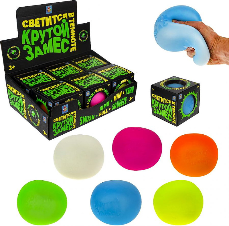1toy Крутой замес, шар 10см, светится в темноте, 6 шт в д/б