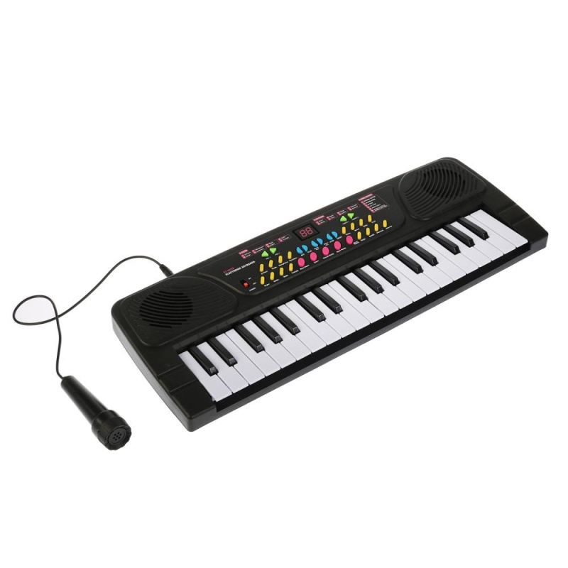 Детский музыкальный инструмент - пианино - это отличный способ привить малышу любовь к музыке уже с ранних лет. Пианино выполнено в современном дизайне. При нажатии на разные кнопки ребенок будет развивать слуховое восприятие, чувство ритма и такта, а также моторику рук, воображение и творческие способности. Пианино состоит из клавиш и множества кнопок, которые позволяют изменять ритм и тембр, а также добавлять звуки различных ударных инструментов. Игрушка познакомит ребенка с музыкальной грамотой, позволит воспроизводить известные произведения, а также создавать собственные. Комплектация: пианино, микрофон