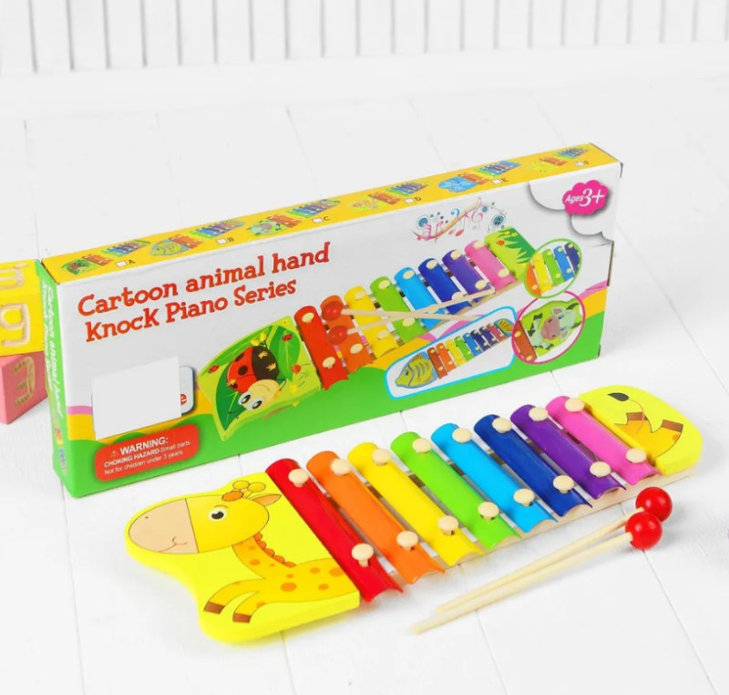 Металлофон — это красочная музыкальная развивающая игрушка, на которой звук извлекается из металлических пластинок молоточками. Пластинки расположены в горизонтальном направлении вдоль деревянного корпуса. Каждый звонкий элемент на металлофоне имеет свой определённый цвет, поэтому ребёнок легко и быстро запомнит мелодии. Игрушка поможет развить у малыша музыкальный слух, чувство ритма, цветовое, эмоциональное восприятие и координацию движений.