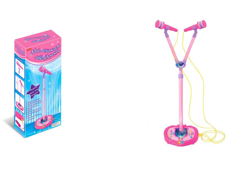 МИКРОФОН ZHORYA МАЛЕНЬКАЯ ЗВЕЗДОЧКА 2ШТ. НА СТОЙКЕ НА БАТАРЕЙКАХ. ZYBB20842/JB0204326 Особенности: - световые эффекты; - функция записи; - регулировка громкости; - регулировка высоты; - возможность подключить плеер. Параметры: - В комплекте: 2 микрофона, держатель, провод, стойка. - Материал: металл, пластмасса.
