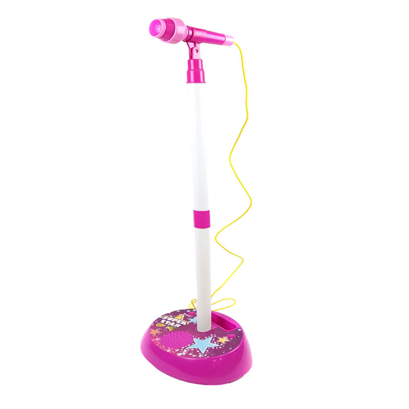 Микрофон на стойке с подстветкой оснащен не только своей непосредственной функцией усиления голоса, но так же имеет разъемы для MP3. К микрофону можно подключить MP3 плеер или телефон и подпевать под песни любимых исполнителей. Есть функция регулировки громкости, а также место на подставке для телефона/MP3 плеера.