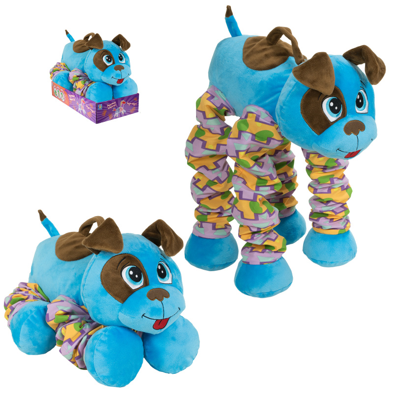 Лапы мягкого Щенка растягиваются как пружины! Стоит только потянуть за ручку на спине голубого Щенка, и он «вырастет»! Его суперпрыгучие лапы начинают с маленького прыжка, и затем они растягиваются больше и больше! Он подпрыгивает супервысоко! И это еще не все, он издаёт забавный звук «баум-баум» каждый раз, когда ты прыгаешь вместе с ним! Бери своего Щенка с собой на прогулку, с ним так весело играть, прыгать и танцевать!