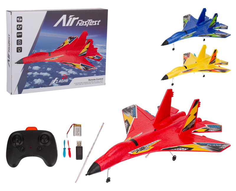 Самолет на пульте р/у, летает, 3 цв. в ассортименте, частота 2,4 Гц, 4-х канальный, размер самолета 42*14*33 см, в/к 34*6,7*43,7 см