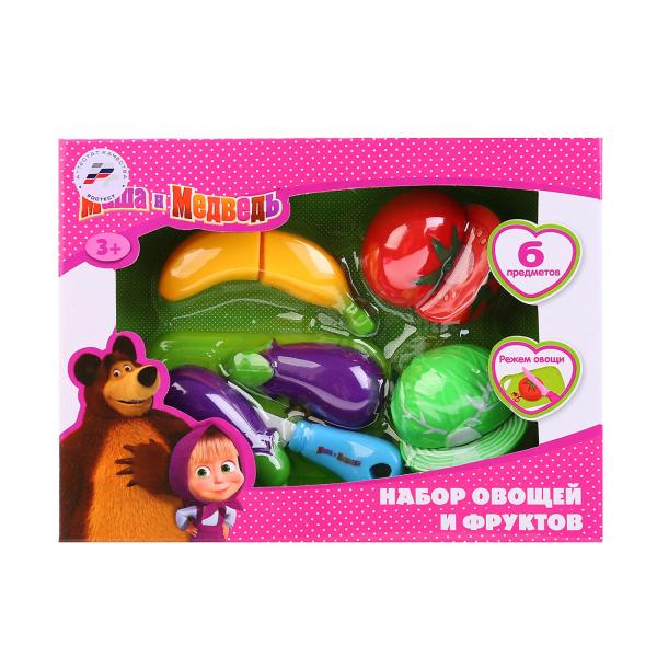 Этот замечательный набор "Маша и Медведь" поможет разучить детям названия фруктов и овощей, посмотреть как наглядно они выглядят. С помощью доски и ножа можно показать юной помощнице, как резать овощи и фрукты. Также девочки в своих сюжетно-ролевых играх смогут использовать этот набор на воображаемой кухне. Набор состоит из 6-ти овощей и фруктов, а также ножа и досточки для резки. Сделан из безопасного и прочного пластика.