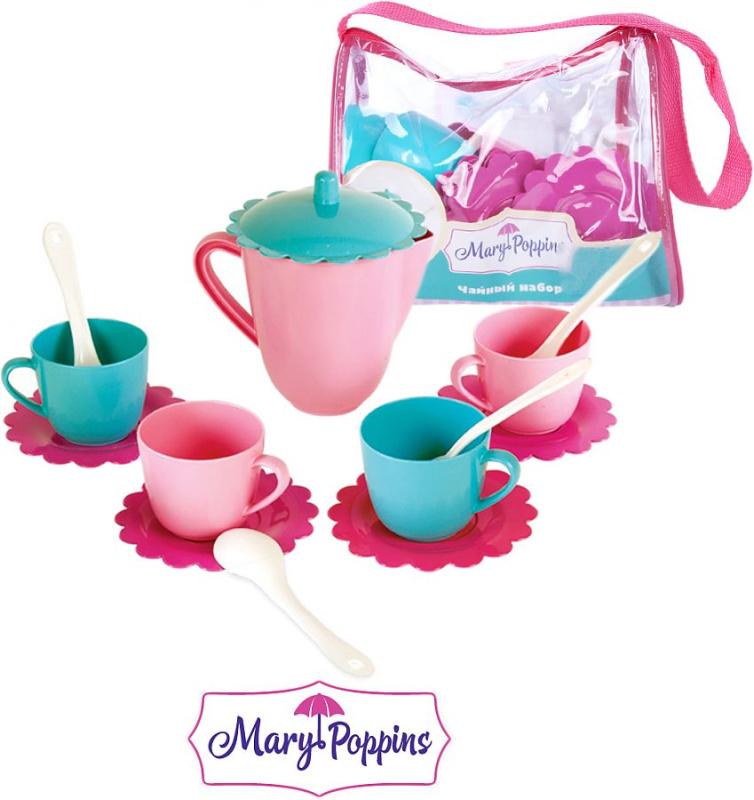Детский игровой чайный сервиз из эксклюзивной коллекции "Зайка" ТМ Mary Poppins включает 10 предметов. Поставляется в сетке. В наборе: чашки - 2 шт., блюдца - 2 шт., ложки - 2 шт., чайник - 1 шт., крышка для чайника - 1 шт., пиалы - 2 шт. Размеры: высота чашки 5 см, высота чайника 10 см, диаметр блюдца 10 см. Изготовлен из пластмассы.
