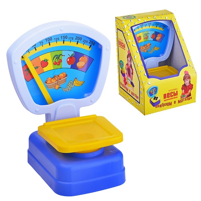 Детские игрушечные весы. Если положить на чашу какой-нибудь достаточно весомый предмет, стрелка отклониться. Такие весы отлично подходят для игры в магазин. Можно играть и дома и в детском саду.