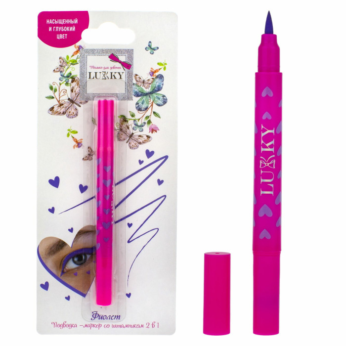 Lukky Фиолет Подводка-маркер со штампиком Сердечко 2 в 1 станет лучшим другом для девушек, у которых нет времени долго рисовать стрелки.