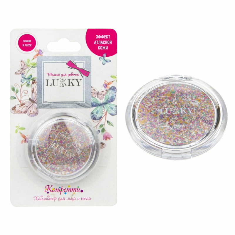 Пудра-хайлайтер оттенка яркое конфетти для лица придаст вашему лицу яркость и неповторимый мерцающий эффект!