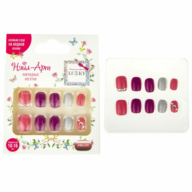 Красный цвет в оформлении ногтей пользуется особой популярностью. Все потому, что он многогранный, имеет довольно большое количество оттенков. Каждый из них интересный, универсальный и хорошо подходит практически для любого образа. Такой маникюр, украшенный стразами и разбаленный ярким серебристым цветом, может легко оказаться на твоих ноготочках благодаря набору Нэйл,Арт от LUKKY. Накладные ноготки от LUKKY, это новинка от любимого бренда, с помощью которой можно быстро и легко сделать твои ногти красивыми и ухоженными. В наборе 10 искусственных ноготков с клейким слоем на водной основе на оборотной стороне , безопасно и без запаха. Просто расположи накладной ноготь на чистом ногте, прижми его и подержи 10 секунд. Готово! Накладные ногти предназначены для девочек-подростков от 10 до 16 лет.