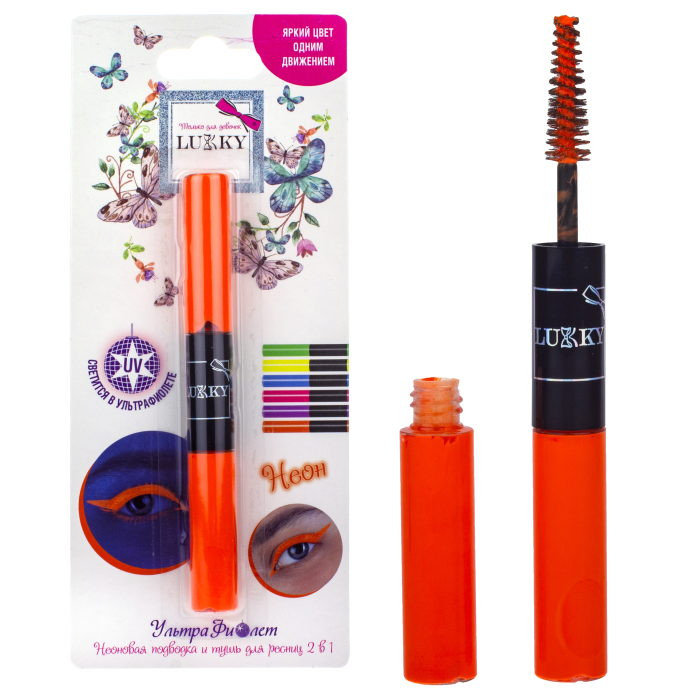 Lukky УльтраФиолет тушь для ресниц и подводка, 10 мл, цвет оранжевый неон