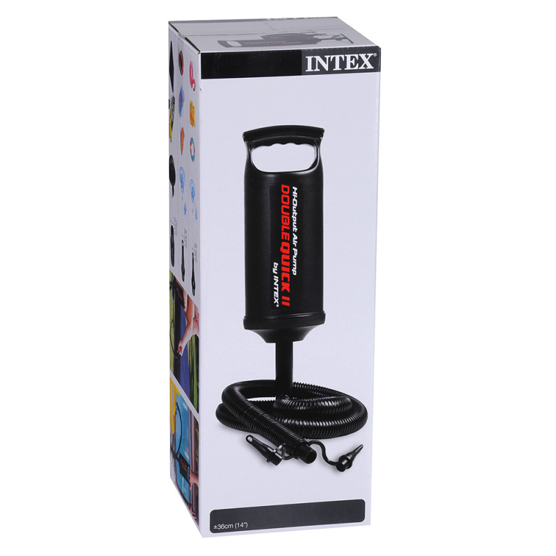Насос ручной 36 см отличается от предыдущей версии только размером. Если вам неудобно пользоваться маленькой моделью, смело берите этот прибор. Все функции – аналогичны. Вы можете подкачать им плавательный круг, надувную игрушку, матрас и даже лодку. Просто выберите подходящую насадку, подсоедините ее к нужному изделию и качайте.