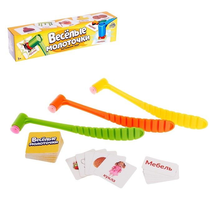 Весёлые молоточки - это активная игра на эрудицию и скорость реакции. Подготовка к игре Выберите ведущего, который будет читать загадки с карточек. Игрокам раздайте по молоточку. Карточки с отгадками хаотично разложите на столе картинкой вверх. Начинаем игру Ведущий читает загадку, а игроки должны отгадать её, найти быстрее всех ответ на карточке и хлопнуть молоточком по нужной. Игра заканчивается, когда на столе не остаётся ни одной карточки. Победит тот, кто соберёт больше всех карточек. Развитие навыков