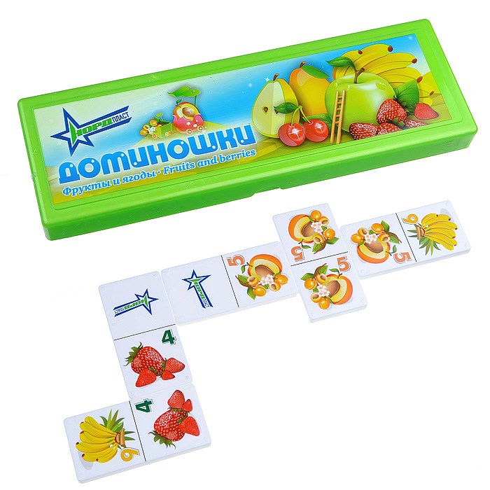 Яркое домино от компании Нордпласт с изображением фруктов и ягод. Изготовлено из прочного и безопасного для здоровья пластика. Развивает внимательность и логику, поможет выучить цифры.