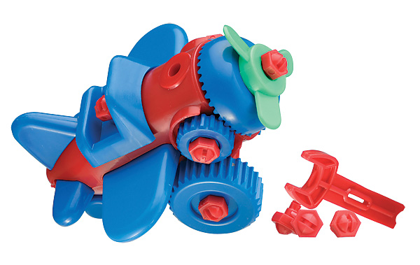 Это игра для детей, которые любят конструировать. Эту игрушку можно собрать и разобрать при помощи пластмассового ключа и винтов. Крутящийся винт при движении помогает представлять ребенку, что он пилот маленького самолета.