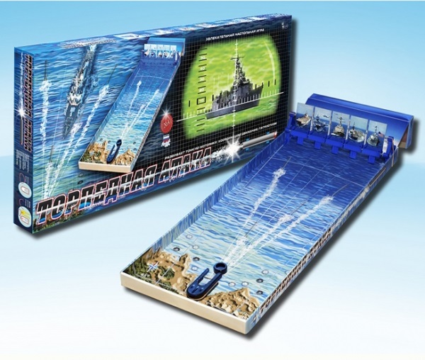 Настольная игра "Торпедная атака" позволит устроить настоящую морскую битву. Каждый игрок должен с помощью катапульты и специального снаряда целиться в мишень, на которой изображены корабли. Нужно хорошенько прицелиться, чтобы попасть точно в яблочко. Победит тот, чей снаряд поразит большее количество кораблей. В комплект входят карточки с мишенью и само "торпедное оружие". Красочные картинки и игровое поле, изображающее волны, позволят игрокам окунуться в атмосферу моря.