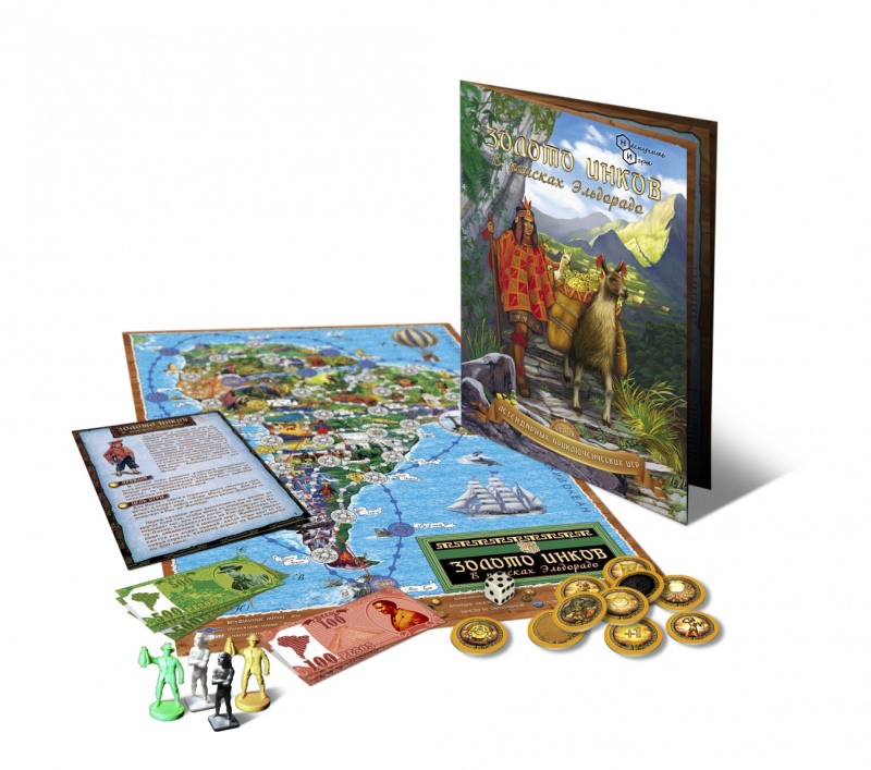 По легенде в начале ХХ века английским кладоискателям в руки попала карта Южной Америки, на которой указаны возможные места захоронения оставшегося Золота Инков. Они собирают экспедицию для поиска сокровищ. Но члены экспедиции не подозревали, что к тому времени еще сохранилась немногочисленная община Инков, которая всеми силами будет стараться спрятать наследство предков от рук англичан. Выбери, на какой ты стороне: Кладоискателей или Инков. Изучите все пути Южной Америки, чтобы раньше остальных игроков найти реликвии инков и доставить их в Мачу-Пикчу или Рио-де-Жанейро, в зависимости от выбранной страны. Игра для детей от 7 лет.