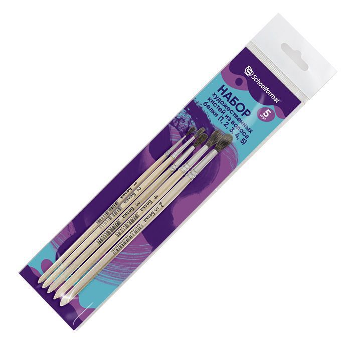 Набор кистей из волоса белки Schoolformat® включают как классические художественные кисти, так и специальные оформительские. Оформительские кисти отличаются плоской формой пучка и предназначены для работ с художественными красками - акрилом и маслом.