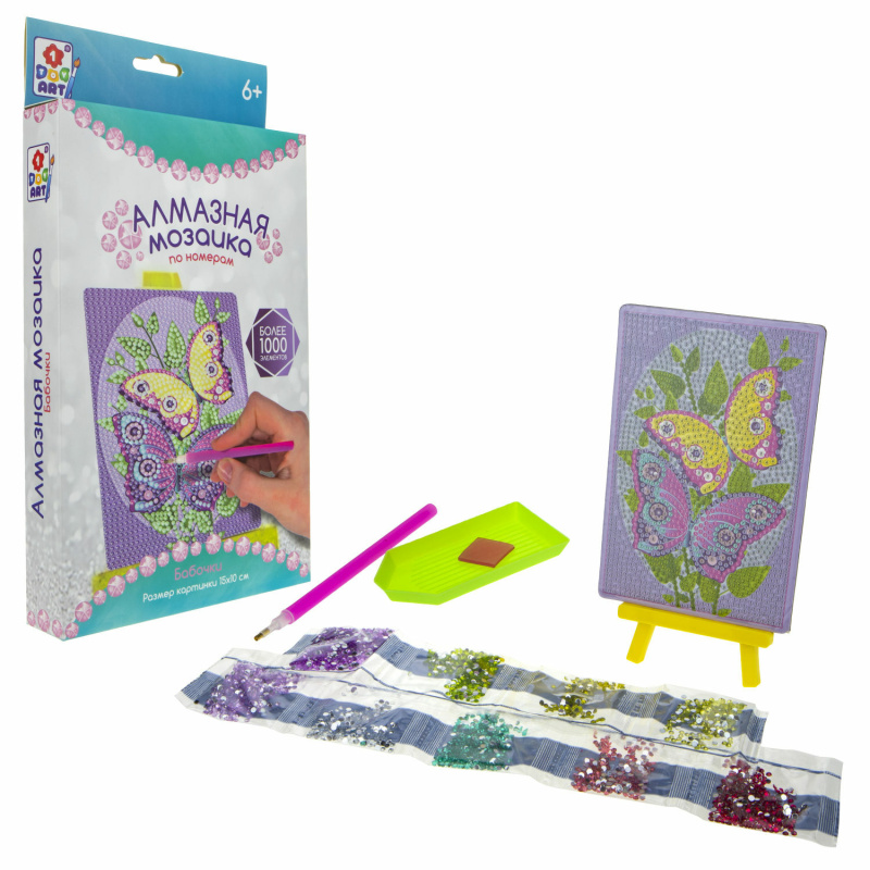 Уникальный дизайн алмазной мозаики разработан специально для тм 1TOY ART. В набор входят специальные стразы, которые крепятся на клеевую основу при помощи стилуса. Готовая картинка не выцветает и не тускнеет. Её можно поместить на подставку из набора или повесить на стену. Размер картины 15х10 см. Процесс изготовления картины достаточно простой. Собранная мозаика эффектно сияет благодаря специальному покрытию и огранке страз. Набор развивает мелкую моторику, усидчивость и внимание.