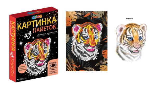 Набор для творчества - картина из пайеток с гвоздиками «Тигрёнок» ТМ «Мульти Арт» - отличный подарок для маленького художника. Комплектация и особенности: - более 550 деталей - цветная основа для аппликации 26 х 18 см - пенопластовая основа - пин - гвоздики (1 комплект) - разноцветные пайетки (1 комплект) - без клея и ножниц С помощью красочной основы и сверкающих пайеток, прикрепляемых к ней гвоздиками, ребёнок сможет самостоятельно создать красивую блестящую картину с изображением милого тигрёнка. Готовую поделку можно подарить близким или использовать для украшения интерьера. Занятия с наборами для творчества ТМ «Мульти Арт» развивают: - внимание и усидчивость - творческое мышление - воображение - сенсорное и цветовое восприятие - моторику рук - воображение Размер упаковки: 20 x 28 x 4 см. Материал: картон + пластмасса. Рекомендовано детям старше 5-ти лет.