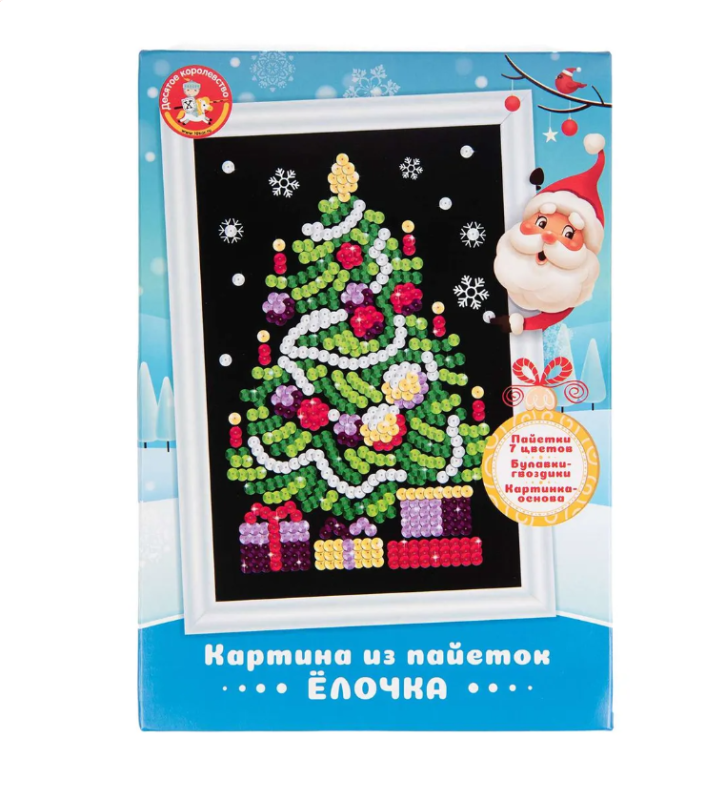 Собирая картинку из пайеток «Ёлочка», ребёнок развивает мелкую моторику, творческие способности, усидчивость и воображение.